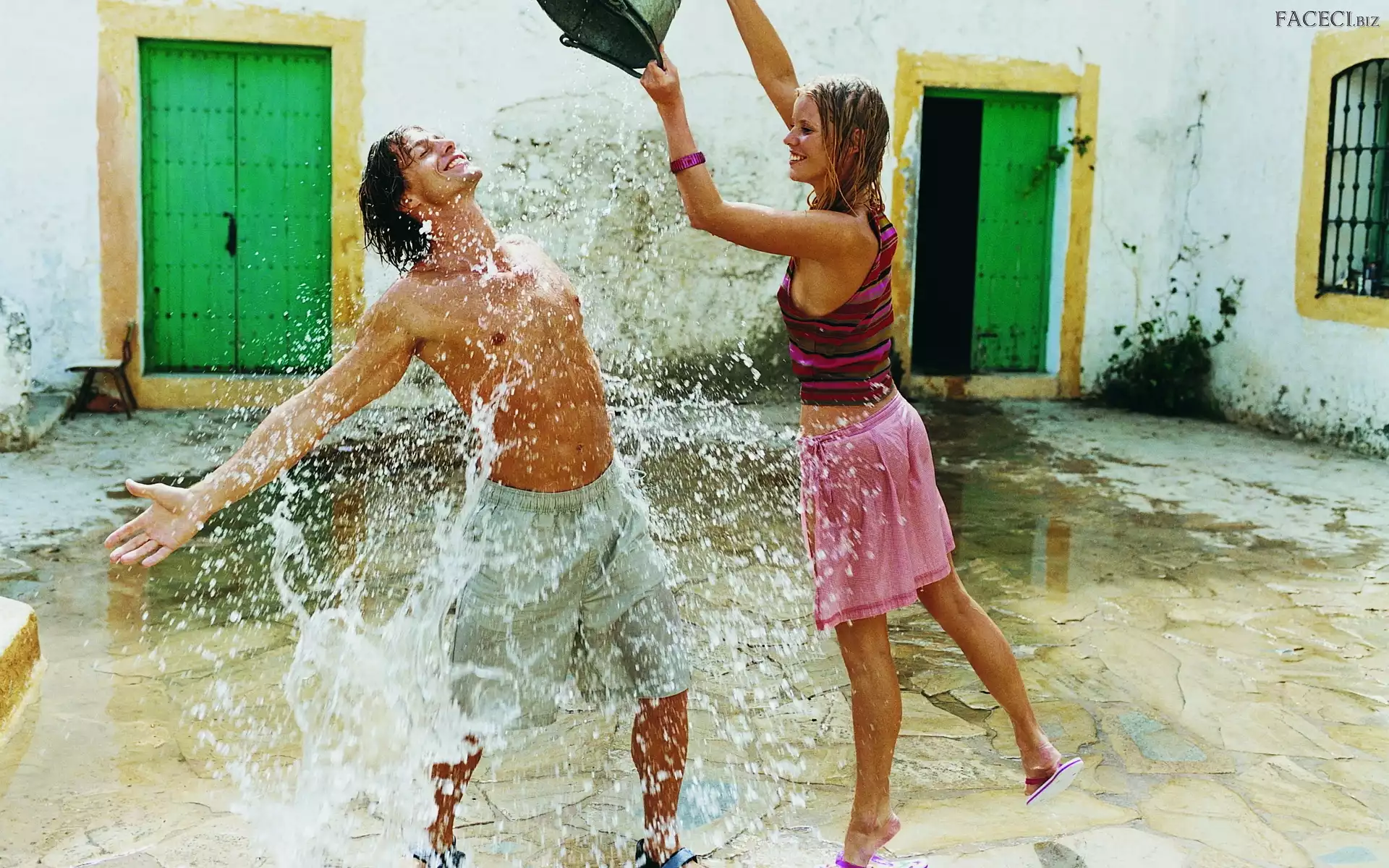 Polewanie, Wiadro, Mężczyzna, Kobieta, Woda - faceci.biz